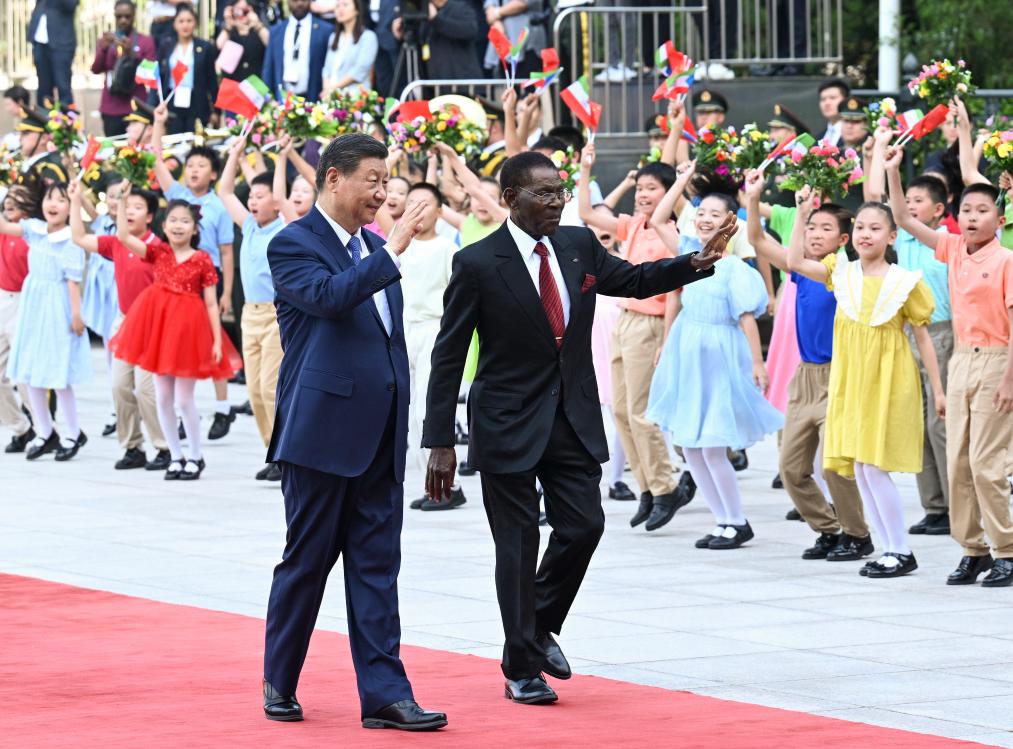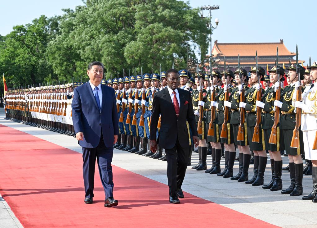 [신화망 베이징 5월29일] 시진핑(習近平) 중국 국가주석이 28일 오후 베이징 인민대회당에서 중국을 국빈 방문한 테오도로 오비앙 응게마 음바소고 적도기니 대통령과 회담했다. 시진핑 주석은 회담에 앞서 인민대회당 동문 밖 광장에서 오비앙 대통령을 위한 환영식을 열었다. [촬영/신화사 기자 야오다웨이(姚大偉)]