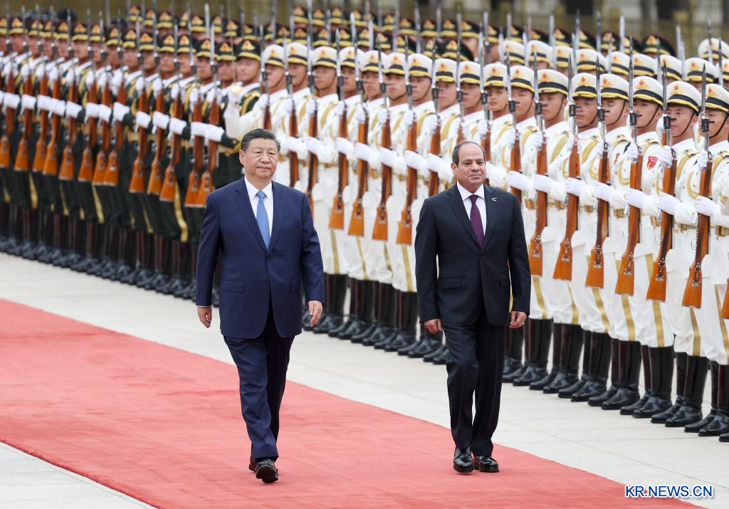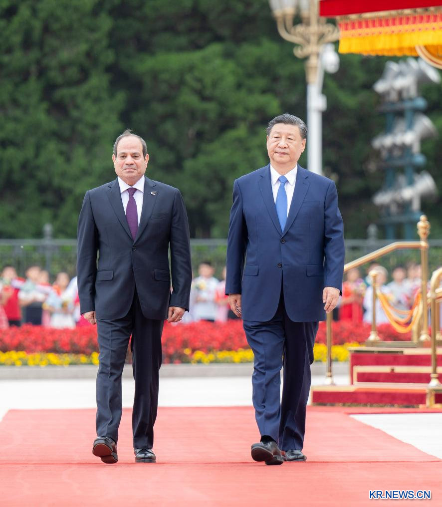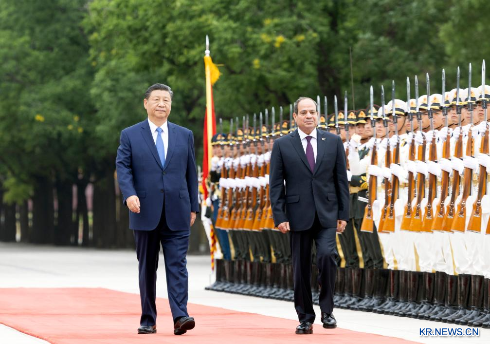 시진핑(習近平) 중국 국가주석이 지난 29일 오후 베이징 인민대회당에서 제10차 중국-아랍 협력포럼 장관급 회의 개막식 참석차 중국을 방문한 압델 파타 엘시시 이집트 대통령과 회담을 가졌다. 회담에 앞서 시 주석은 인민대회당 동문 밖 광장에서 엘시시 대통령을 위한 환영식을 열었다.[촬영/신화사 기자 류웨이빙(劉衛兵)]