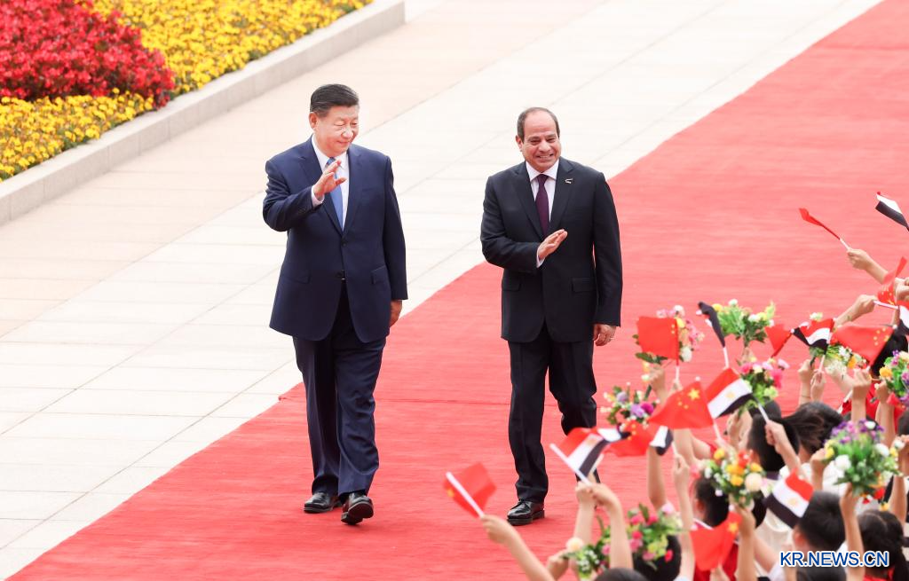 시진핑(習近平) 중국 국가주석이 지난 29일 오후 베이징 인민대회당에서 제10차 중국-아랍 협력포럼 장관급 회의 개막식 참석차 중국을 방문한 압델 파타 엘시시 이집트 대통령과 회담을 가졌다. 회담에 앞서 시 주석은 인민대회당 동문 밖 광장에서 엘시시 대통령을 위한 환영식을 열었다.[촬영/신화사 기자 팡싱레이(龐興雷)]