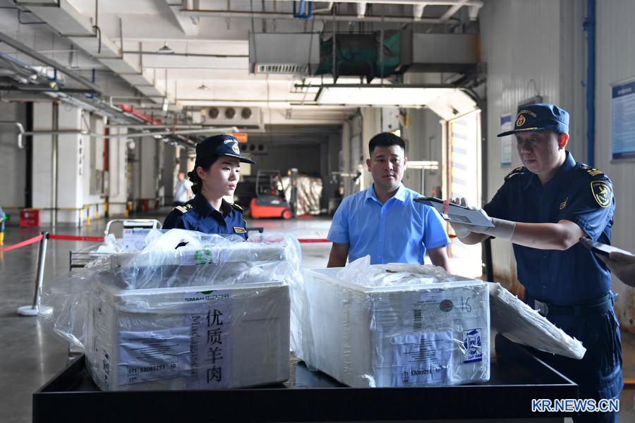 [신화망 창사 9월9일] 아프리카 마다가스카르 냉동 양고기가 8일 후난(湖南)성 훙싱(紅星)수입육 지정 검사장에 도착했다.
