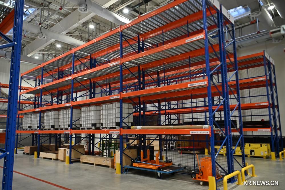 24일 쓰촨(四川)성 청두(成都)시에 위치한 에어버스 항공기 전 생명주기 서비스센터 창고 내부.